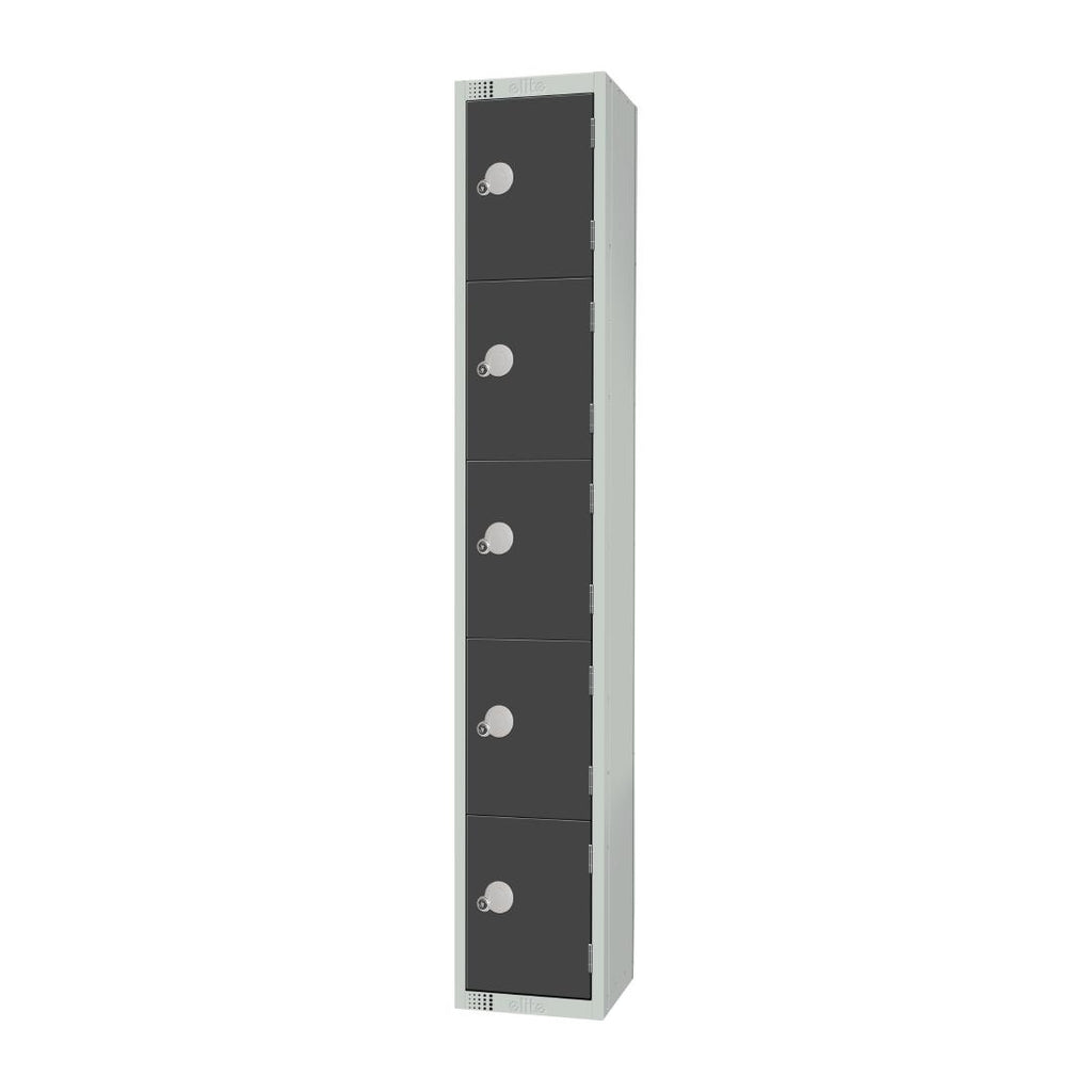 The Elite 5 door grey steel locker is finished with a hard wearing powder coating which is effective against MRSA and e-coli, making it perfect for changing room areas where maintaining a clean and healthy environment is crucial. Pre-drilled holes in the rear of each unit allow them to be fixed to a wall, or nested together for maximum space efficiency.