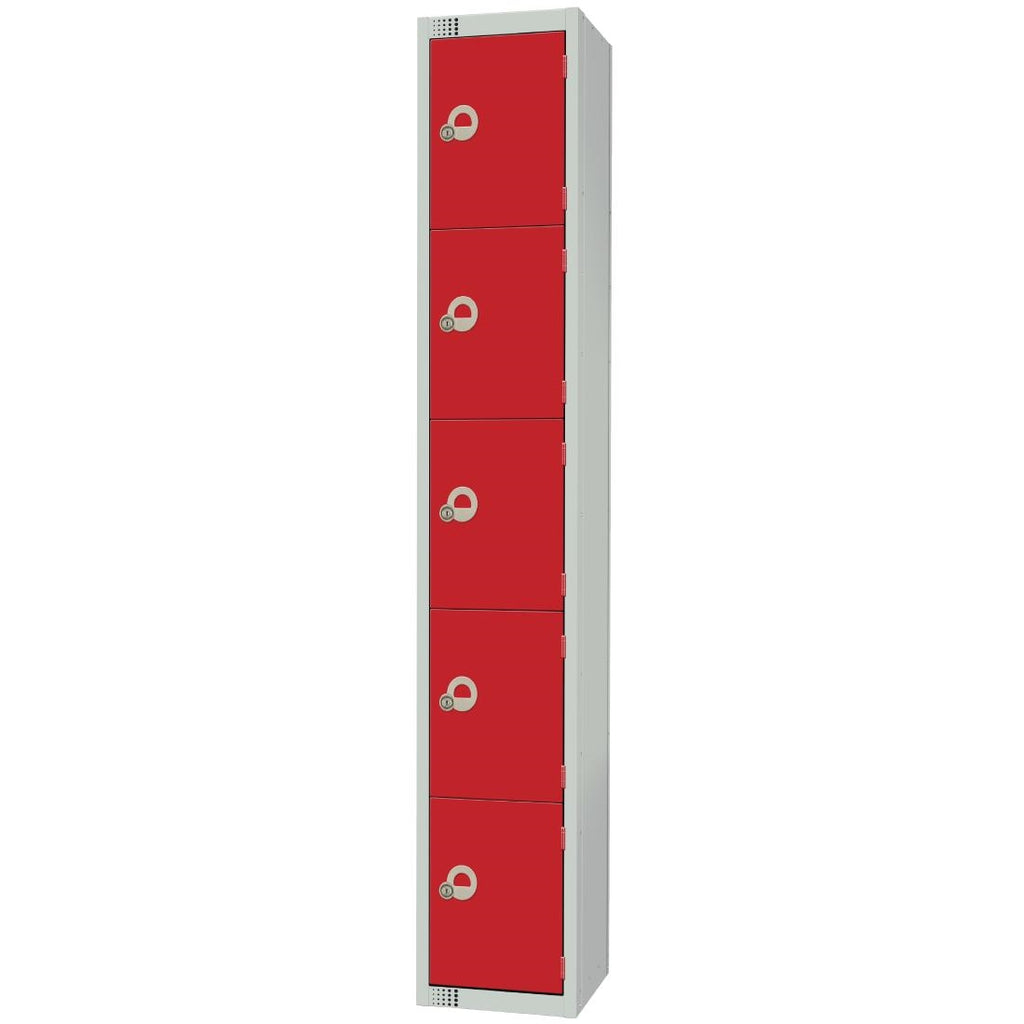 Robust, versatile lockers with a welded plinth between the doors to improve inter-compartment security. Available in 300mm or 450mm depths, one to eight door options, five colours, flat or sloping top and all with either padlock or camlock fittings (padlock not supplied). Single door lockers feature top shelf and double coat hook, double door features doucle coat hooks.