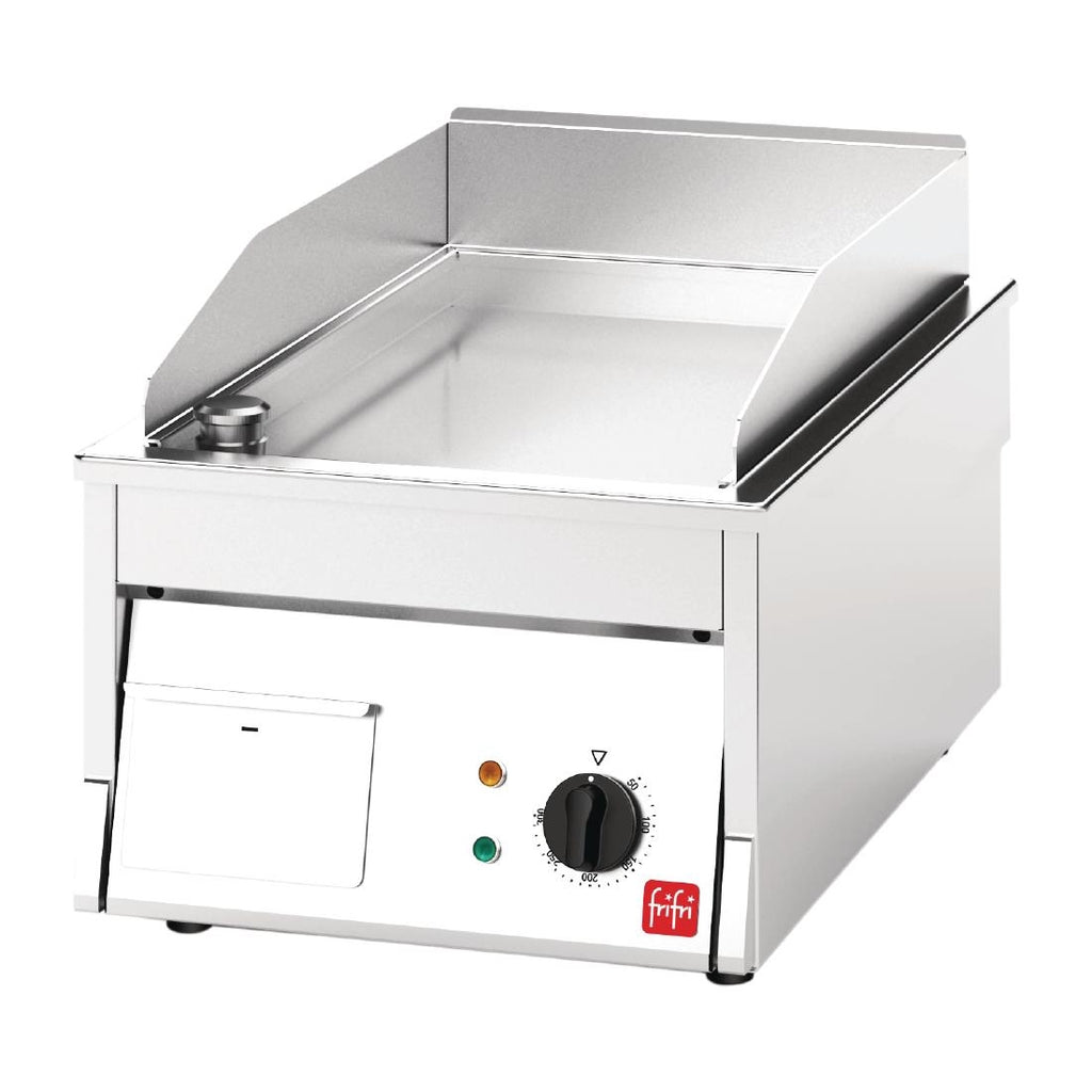 A revolution in griddle technology, the FriFri 700000 electric griddle allows you to cook with precision, speed and style, all within a compact, countertop unit. With its highly polished chrome surface, the griddle heats up faster than cast iron versions, meaning it uses less energy and works more efficiently. Heat is also effectively retained within the plate, which is then used to cook food, instead of heating up your kitchen. Front-mounted dial thermostat control and solid stainless steel construction make the griddle easy to use and simple to clean.