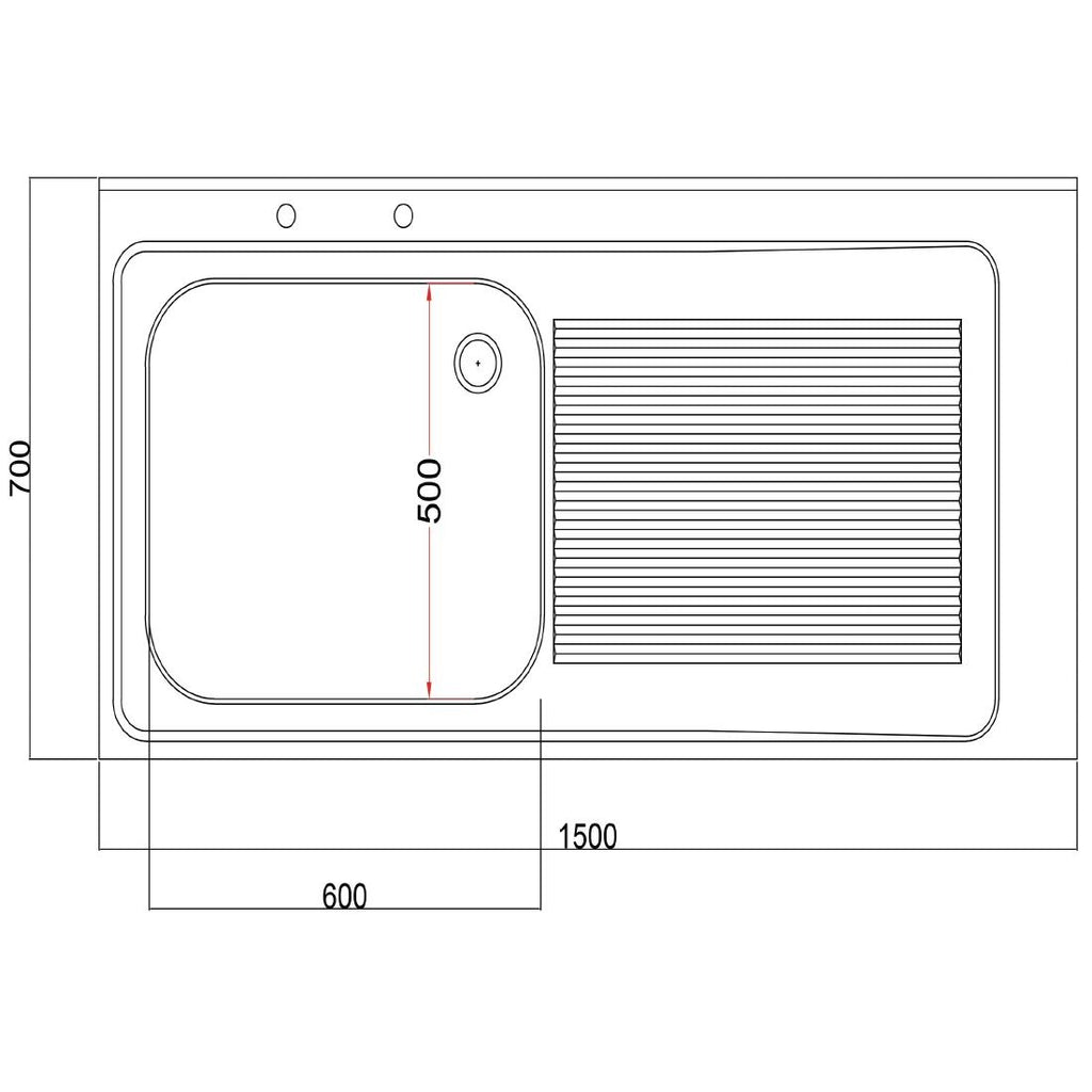 Holmes Fully Assembled Stainless Steel Sink Right Hand Drainer 1500mm