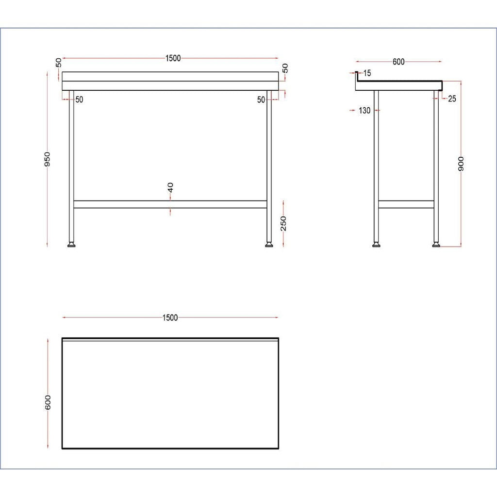 Holmes Stainless Steel Wall Table with Upstand 1500mm