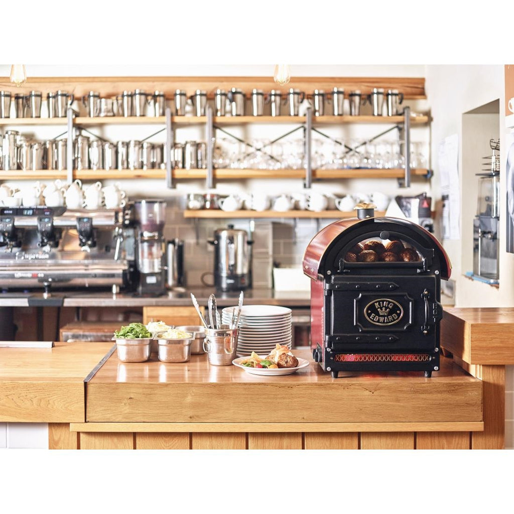 This small King Edward electric potato baker makes perfect baked potatoes, hot and ready to serve in approximately 55 minutes. It is a highly efficient and versatile convection oven which can also be used to cook other foods. Hand built with vitreous enamelled coloured panels, solid cast doors and stainless steel interior, the oven also illuminates the potatoes so you know when they are ready to be served.