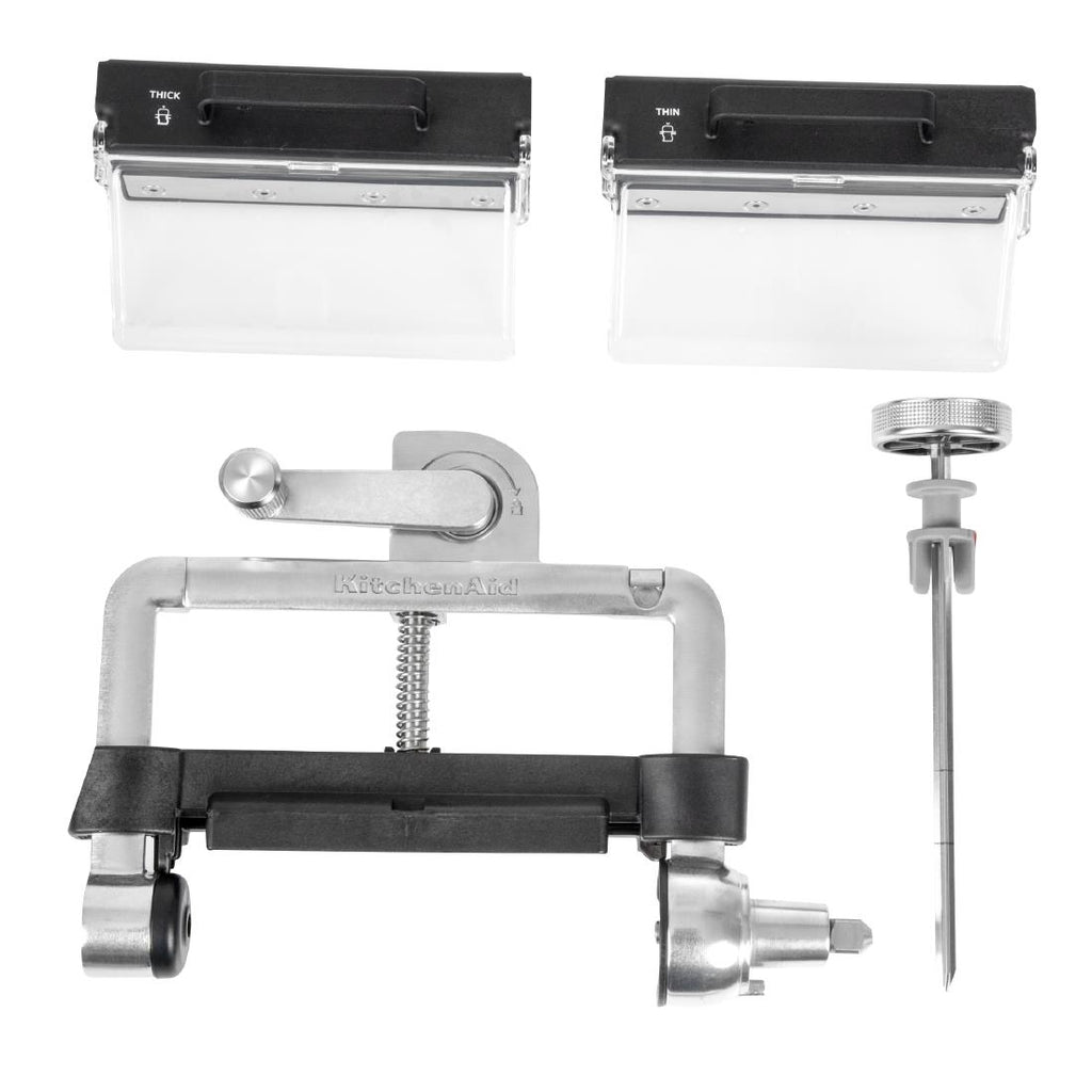 Vegetable sheets have a wide variety of uses - from vegan lasagne, to vegetarian sushi dishes -the opportunities are almost endless. The attachment works with all professional stand mixer models, helping you to transform your KitchenAid the perfect tool to effortlessly sheet fruit and vegetables, creating personalised dishes that your guests are sure to love. The included blades can be easily adjusted via the simple lever which allows you to change the thickness of your vegetable sheets with ease.