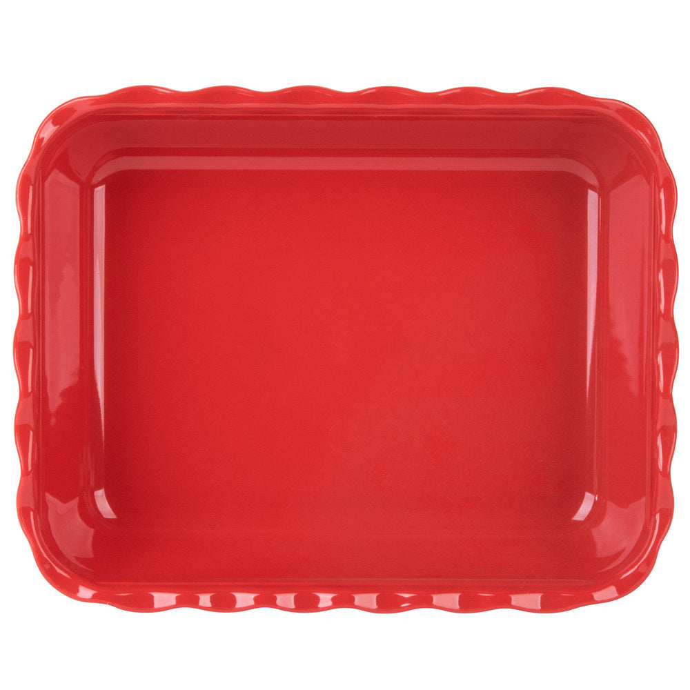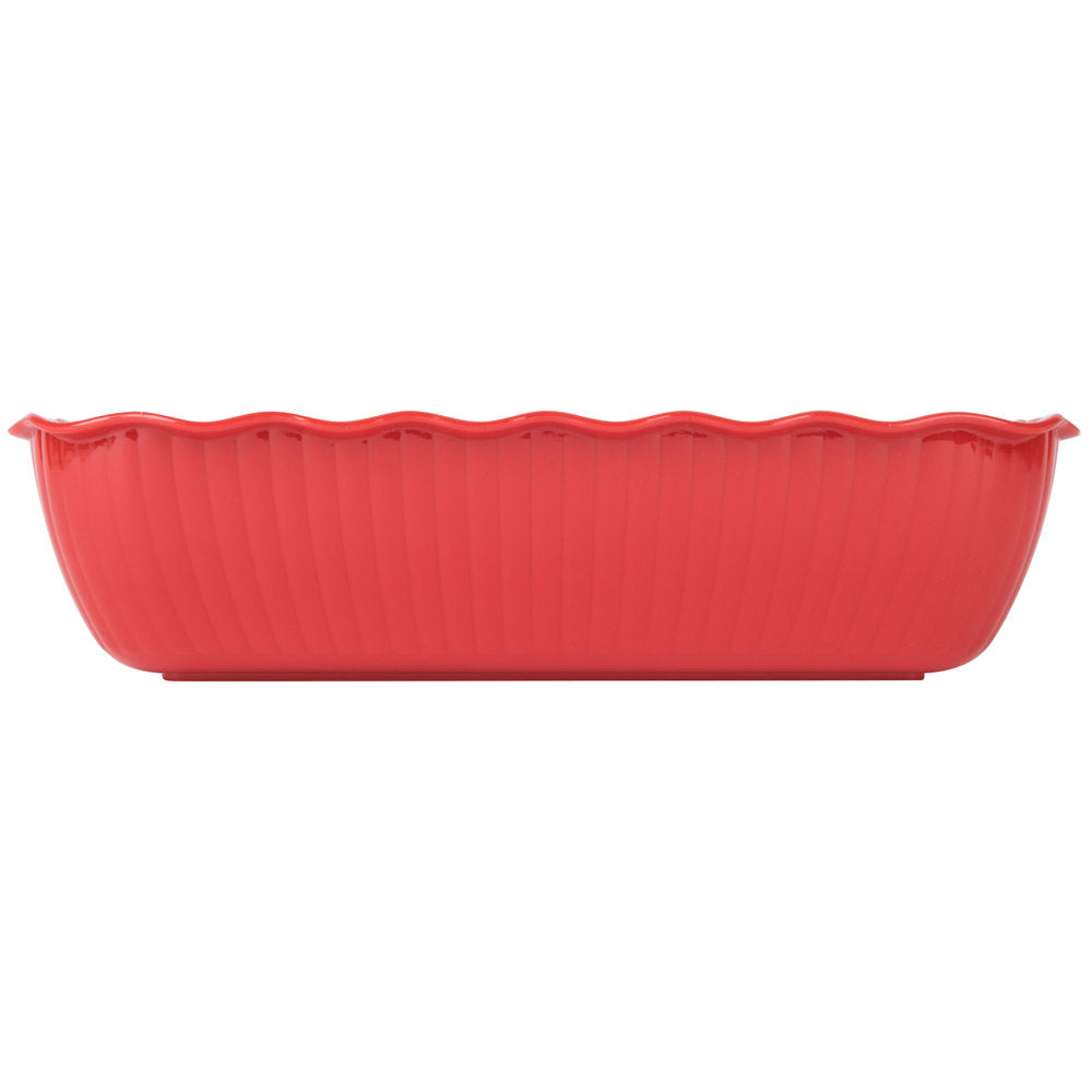 Elevate your food presentation with the Large Crock in a striking red colour, crafted from durable SAN plastic. This versatile serving solution is designed to enhance buffet displays, deli presentations, and various food service environments. Its beautifully crafted swirl pattern, complemented by a high gloss finish and subtle wavy edge, not only adds a touch of elegance but also ensures durability and ease of use. The Large Crock is dishwasher safe, making it effortless to maintain cleanliness and uphold hygiene standards in your food service areas.