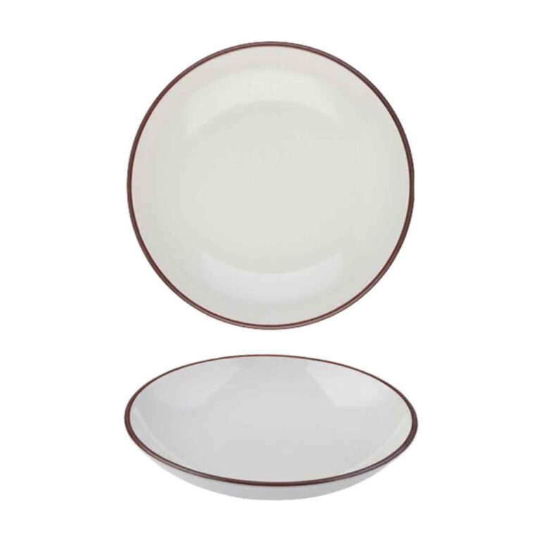Versatile and stylish, the Modest Brown Coupe Bowl offers a clean-lined design and a warm, rich brown band that effortlessly evokes a sophisticated country pub feel. This 25cm (9 ¾") bowl, with a substantial 1140ml (40oz) capacity, is perfect for soups, large salads, or individual main course servings, blending contemporary appeal with commercial durability. Its robust ceramic construction ensures longevity and performance in bustling environments. An excellent choice for diverse menu applications in hotels, restaurants, and cafés.