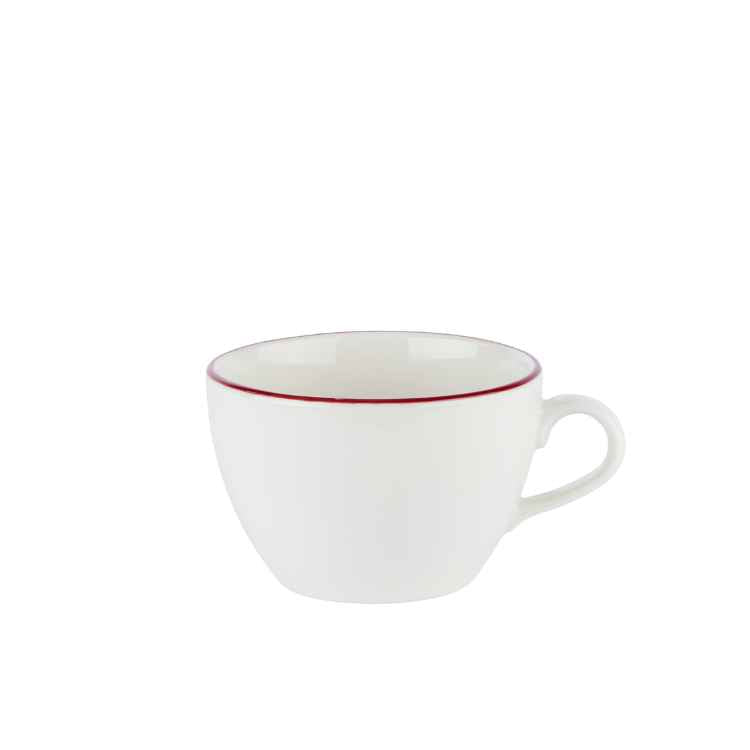 Elevate your coffee service with the sophisticated Modest Maroon Cappuccino Cup, showcasing a clean-lined design framed with a rich, distinctive maroon rim that provides an unparalleled backdrop, effortlessly enhancing any culinary creation. Specifically designed for cappuccino, this cup combines contemporary style with commercial durability, ensuring a premium presentation for your guests. The robust ceramic construction is built to withstand the demands of daily use in busy environments. Perfectly suited for cafes, hotels, and restaurants.