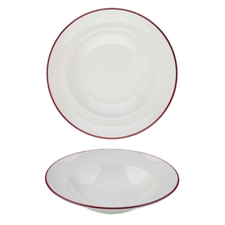 • Specifically designed for pasta, framed with a rich, distinctive maroon rim