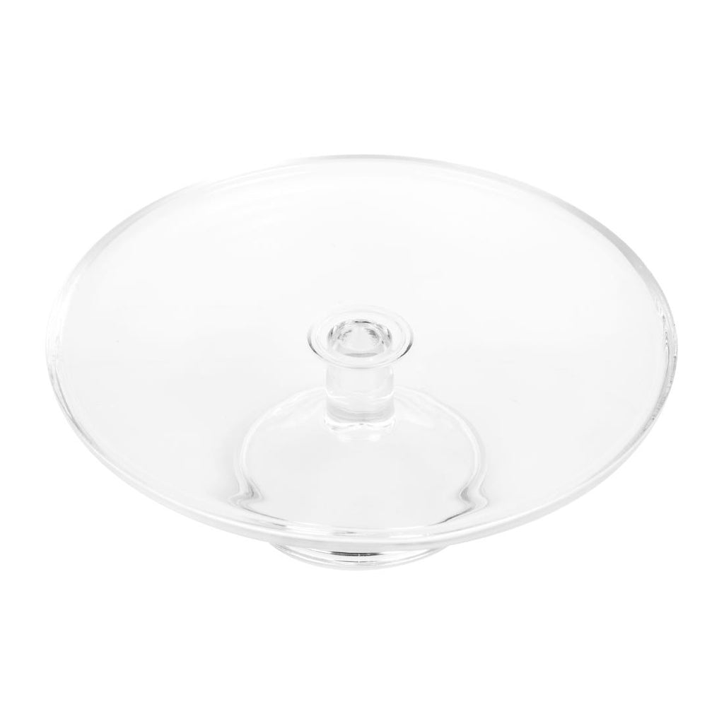 Add practical and stylish food presentation, with this glass cake stand base from Olympia. When used with the Olympia glass cake stand (CS014, sold separately) this set offers a 360° view of your sweet treats, allowing potential customers to see the cake without having to lift the lid and expose the cake to excess air. This, in turn, allows you to keep your cake fresh for longer.