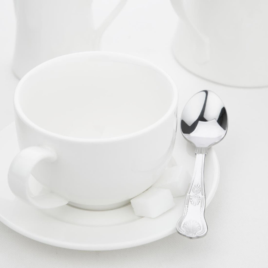 High polish finish 18/0 stainless steel with an elegant regency crest design on the handle
