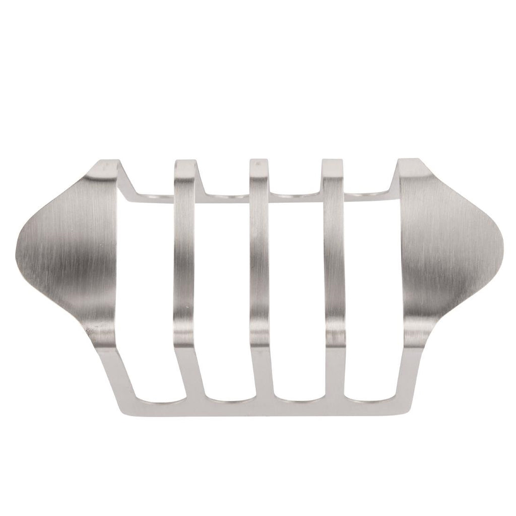 The Olympia 4 Slice Toast Rack is essential to any breakfast service. Able to hold up to 4 slices of toast at a time with an ergonomic and sleek design. The stainless steel material is easy to clean and extremely durable, for reliable service day after day. Includes exterior carrying handles for easy transportation and raised feet at the bottom to keep toast from touching the below surface - meaning a more hygienic experience.