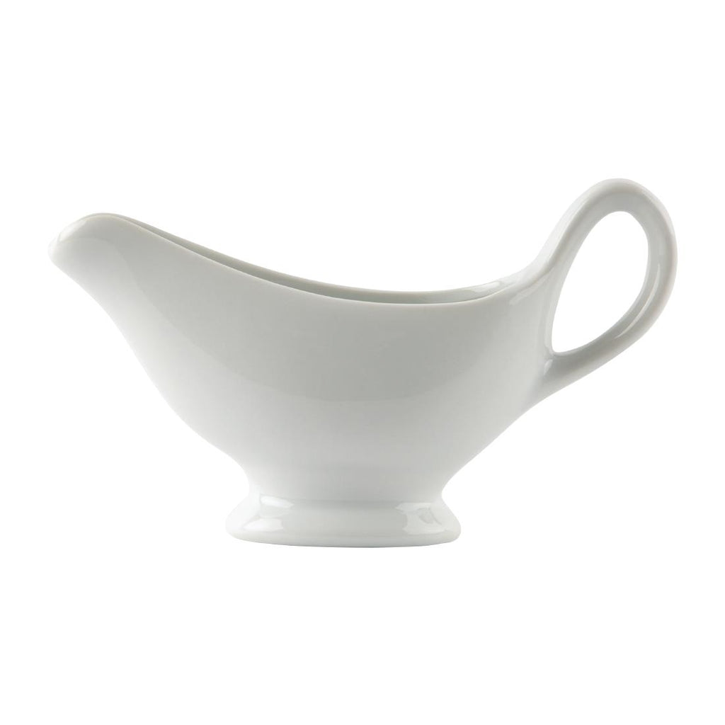Great value pure white porcelain gravy boats by Olympia, ideal for regular use in a wide variety of catering establishments from pubs to restaurants. Durable and versatile, these gravy boats have strengthened rolled edges for chip resistance.