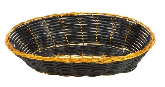 Enhance your home or commercial space with the elegance and functionality of the Oval Basket Black with Gold Trim by Chef Set. Crafted from durable polypropylene, this beautiful basket not only serves as a stylish addition to your decor but also provides practical storage solutions for a variety of items. Its striking black and gold design complements any setting, while the straw-like woven texture offers a sophisticated touch. Designed for versatility, this basket is ideal for holding breads, candies, hot towels, and more, ensuring your countertop remains organised and visually appealing. Moreover, its stackable feature allows for efficient space-saving storage, making it a perfect choice for those looking to maximise their area.