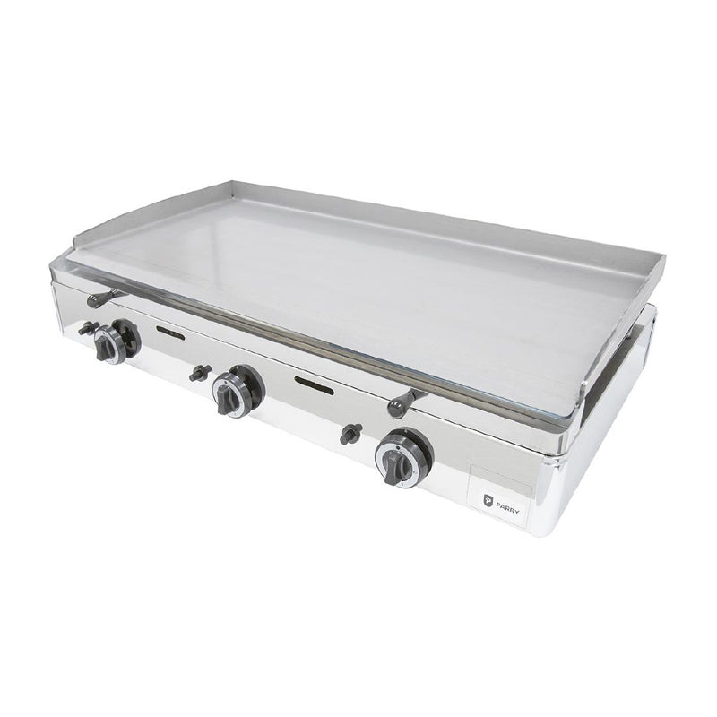 Ideal for use in schools, restaurants, pubs and takeaways, the Parry PGF1000G LPG griddle provides all the power and reliability you need for professional griddling applications. Boasting an almost meter-wide, 6mm steel plate, the griddle offers superb heat-up times and allows you to cook vast quantities of ingredients simultaneously. This means you can both significantly improve the speed of your cooking process and increase your product output to help you meet demand during peak periods. Fitted with three independently controlled burners, the griddle enables you to reduce your energy consumption during slower services, enhancing the efficiency of your operation. Made from sturdy stainless steel, the griddle is also robust enough to provide years of hassle-free and effortless cooking. An integrated drip tray also enables quick and simple cleaning, helping you maintain the premium quality of the unit.