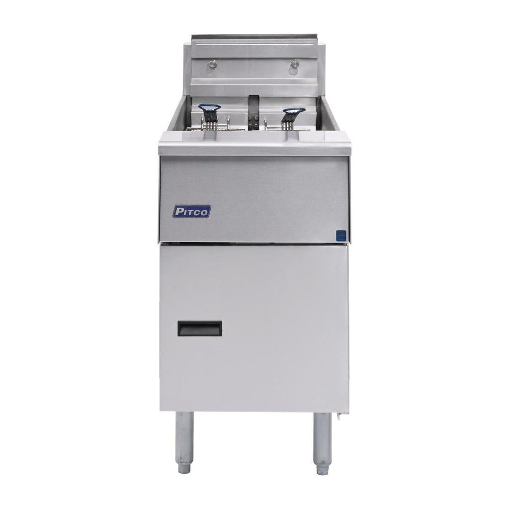 The Pitco SE14S-SSTC electric fryer is perfect for commercial operations and comes with solid state controls. This model is capable of producing 50Kg per hour and has space for twin baskets