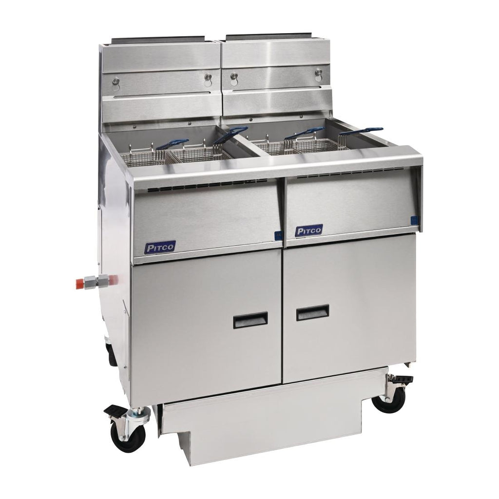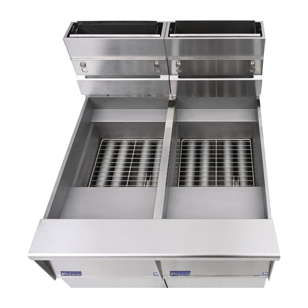 Powerful and reliable, the LPG Pitco SG14RS/FD-FF twin tank tube filtration fryer provides all the performance you need to achieve the perfect frying results.
