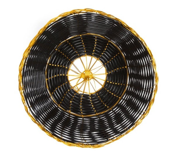 Elevate your home decor while enjoying the convenience of efficient storage with the Round Basket Black with Gold Trim. This is not just a basket; it is a statement piece that brings elegance and order to your living space.