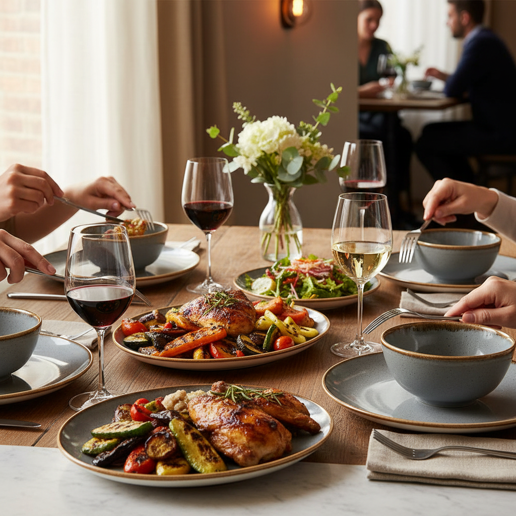 • 4 dinner plates, 4 side plates, and 4 bowls.