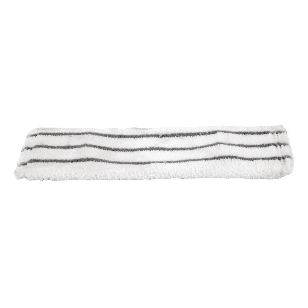 A red SYR microfibre flat mop head designed to quickly wipe up any liquids, dirt or spills.