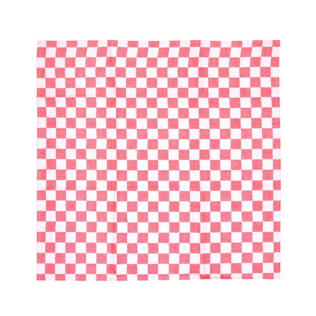 Red chequered cotton chefs towel.