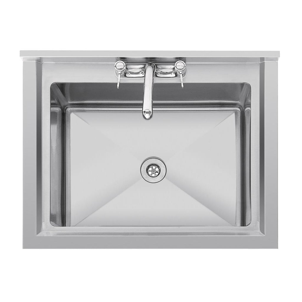 Deep bowl sink for washing large pots, pans and containers etc easily. Raised lip channels spills and splashes back into the sink, minimising over-spill and raised rear upstand prevents items from falling behind the sink during use. Adjustable legs allow for stable positioning on almost any floor surface. Supplied with waste and wall fixings for increased stability.