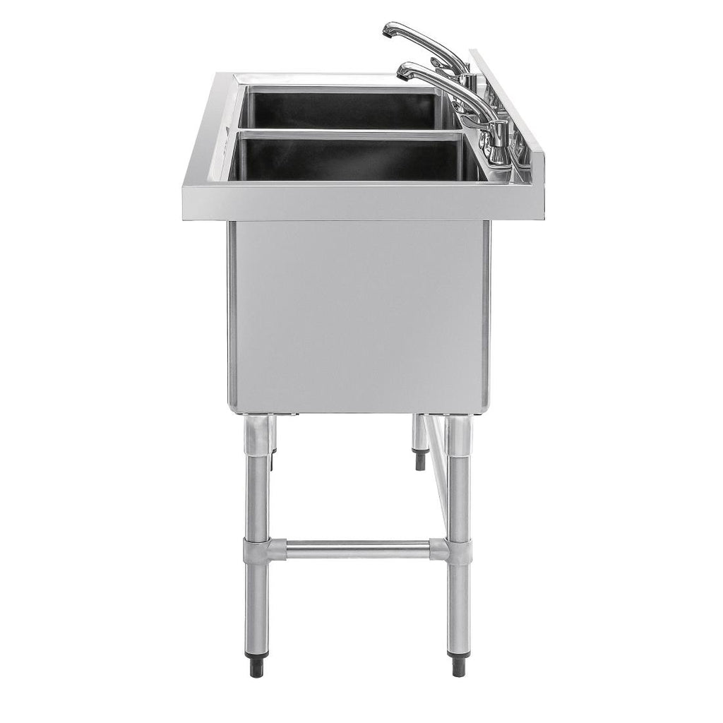 When one sink just isn't enough, the Vogue double sink is a great choice for restaurant and canteen kitchens which need bigger, better pot washing capacity.