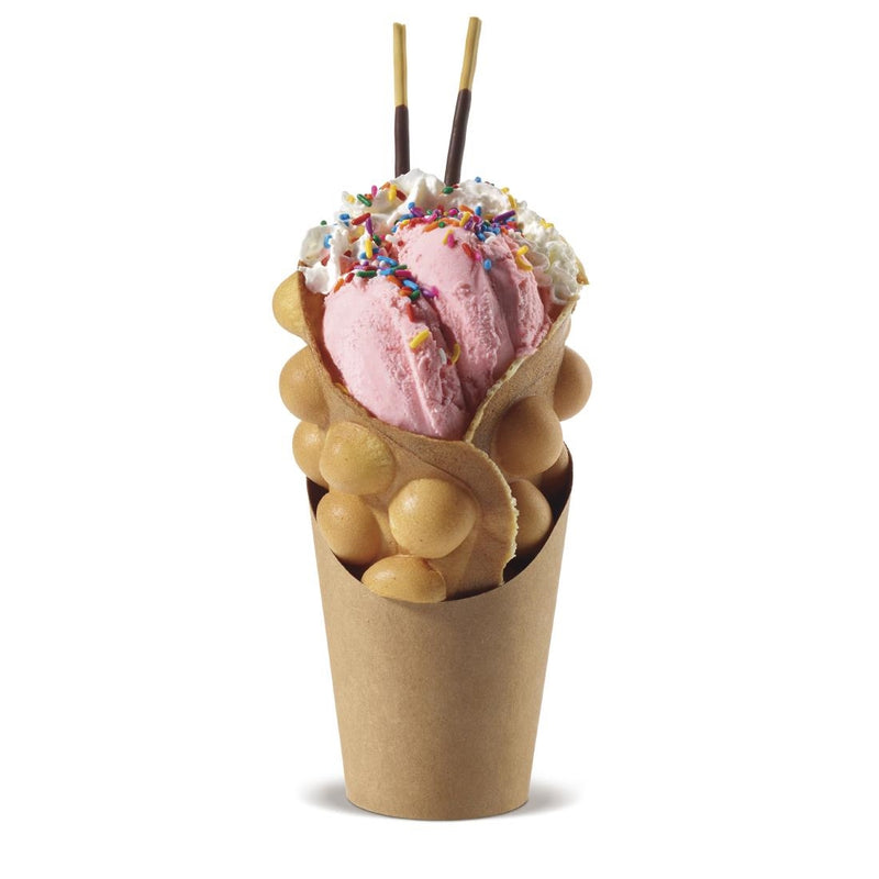 Bring the wildly popular Hong Kong-style street treat to your menu. Designed with heavy-duty die-cast housing, this innovative unit bakes up to 25 bubble waffles per hour with a rotary feature that ensures even baking and browning. Triple-coated nonstick plates make them easy to release, leaving them perfectly formed and ready to be filled with ice cream, or served flat with sweet or savory toppings. An audible beep alerts users when to cook and when to serve. Cleanups are quick and easy with the removable, dishwasher-safe drip tray.