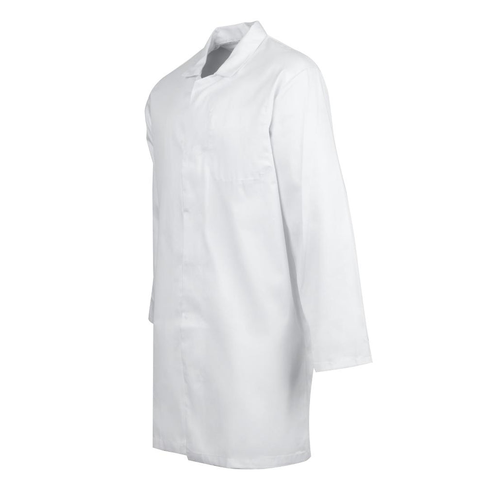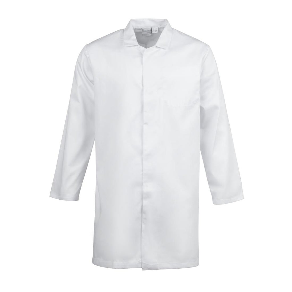 Durable coats with no outside pockets making them suitable for food hygiene purposes.